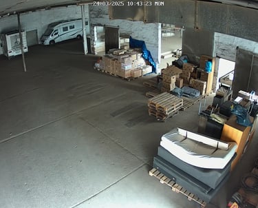 Unsere Lagerplätze sind in einer großen abgeschlossenen und videoüberwachten Lagerhalle. Sie sind in unserer trocken und 24/7 zugänglich!